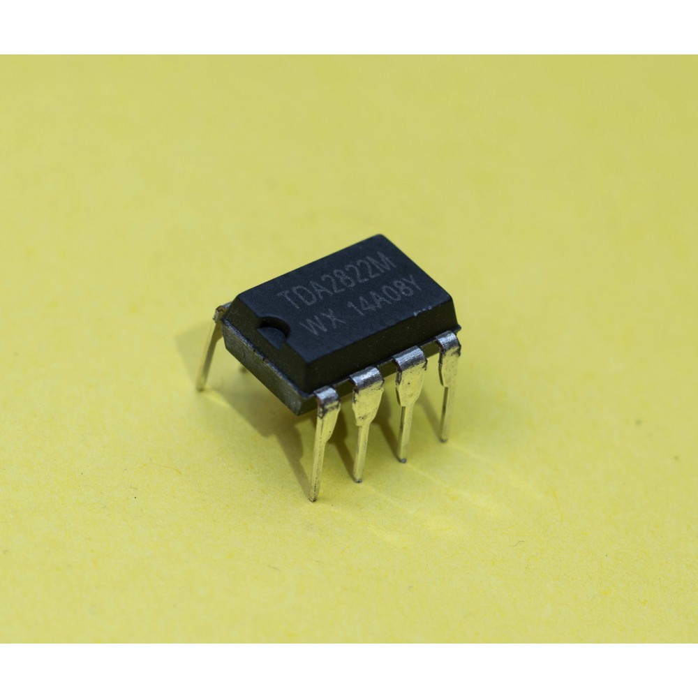 TDA2822M — це подвійний низьковольтний підсилювач потужності, призначений для використання в портативних касетних плеєрах та радіоприймачах. Він підтримує як стерео, так і місткову конфігурацію для підсилення, забезпечуючи високу ефективність при низькій напрузі живлення. Завдяки мінімальному рівню перехресних спотворень і низькому споживанню в режимі очікування, TDA2822M ідеально підходить для застосування у малопотужних аудіо пристроях. Мікросхема забезпечує стабільну роботу при живленні від 1.8 В до 15 В, з можливістю вихідної потужності до 1 Вт.