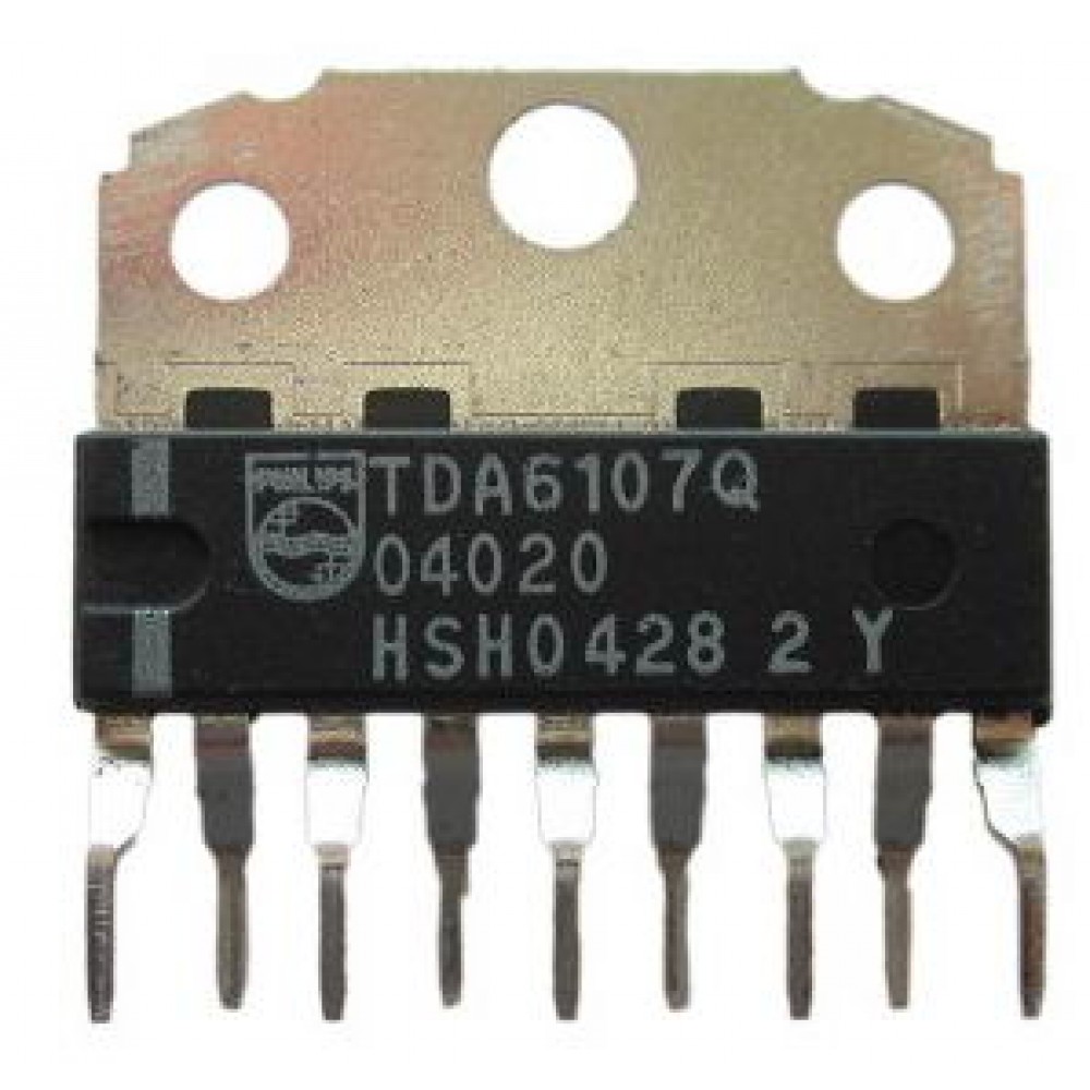 TDA6107Q використовується для підсилення відеосигналу та керування катодами кольорових CRT у телевізорах. Вона забезпечує надійну роботу та високу якість зображення, з мінімальними спотвореннями та стабілізацією струму.