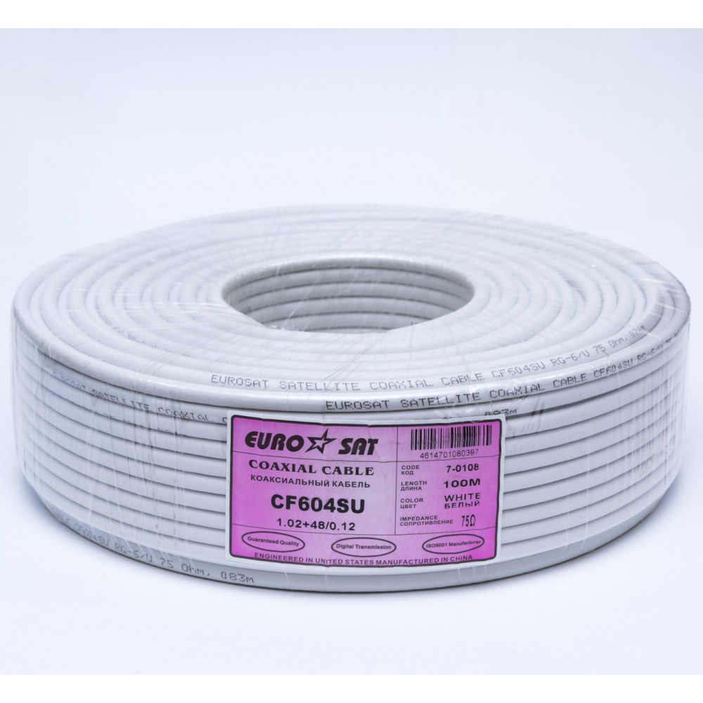 Телевізійний кабель RG-6+48/6.8 мідний EUROSAT білий Кабель до антени мідний ... Читати далі...