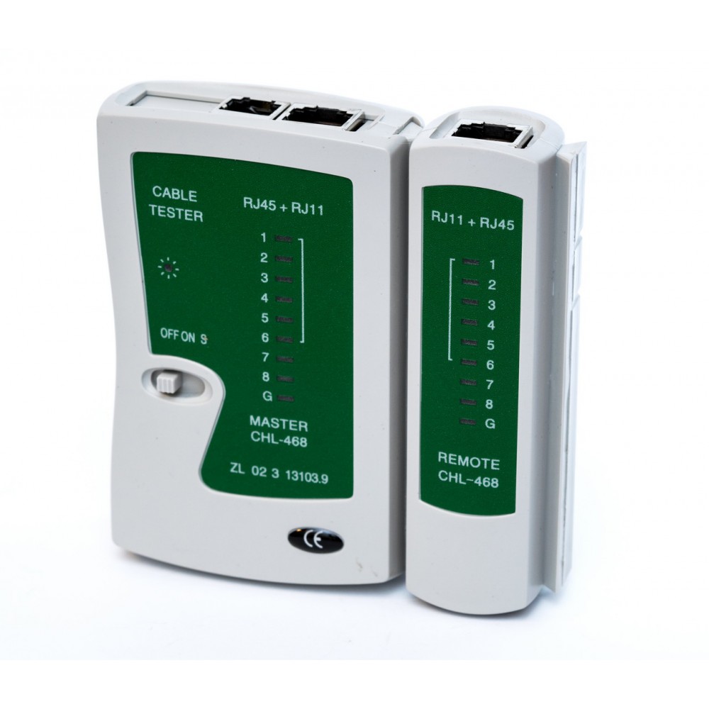 Тестер кабелю CHL-468 для RJ45 та RJ11 — це зручний інструмент для перевірки мережевих і телефонних кабелів. Компактний та легкий у використанні, він дозволяє швидко визначити правильність підключення контактів та ідентифікувати обриви, короткі замикання, перехрещення або інші пошкодження кабелів. Тестер складається з основного блоку (Master) та віддаленого модуля (Remote), що дозволяє тестувати кабелі на значній відстані.