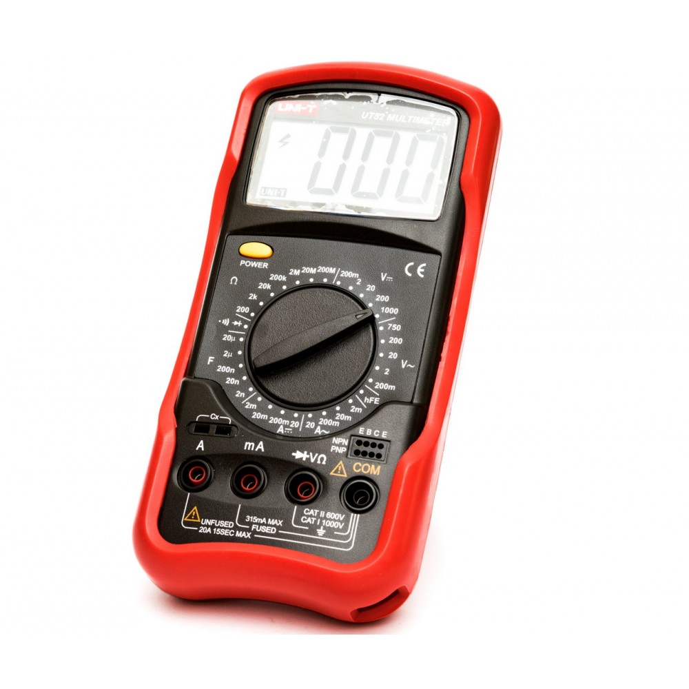Універсальний високоточний прилад з 1999-розрядних ЖК-дисплеєм для вимірювання постійного і змінного напруги, постійного і змінного струму, опору та ємності. З додаткових можливостей Цифровий мультиметр UT52 має тест діодів, прозвонку з'єднань на розрив. Забезпечує захист від перевантажень на всіх межах.Функціональні можливості мультиметра UT52:Функції вимірів: