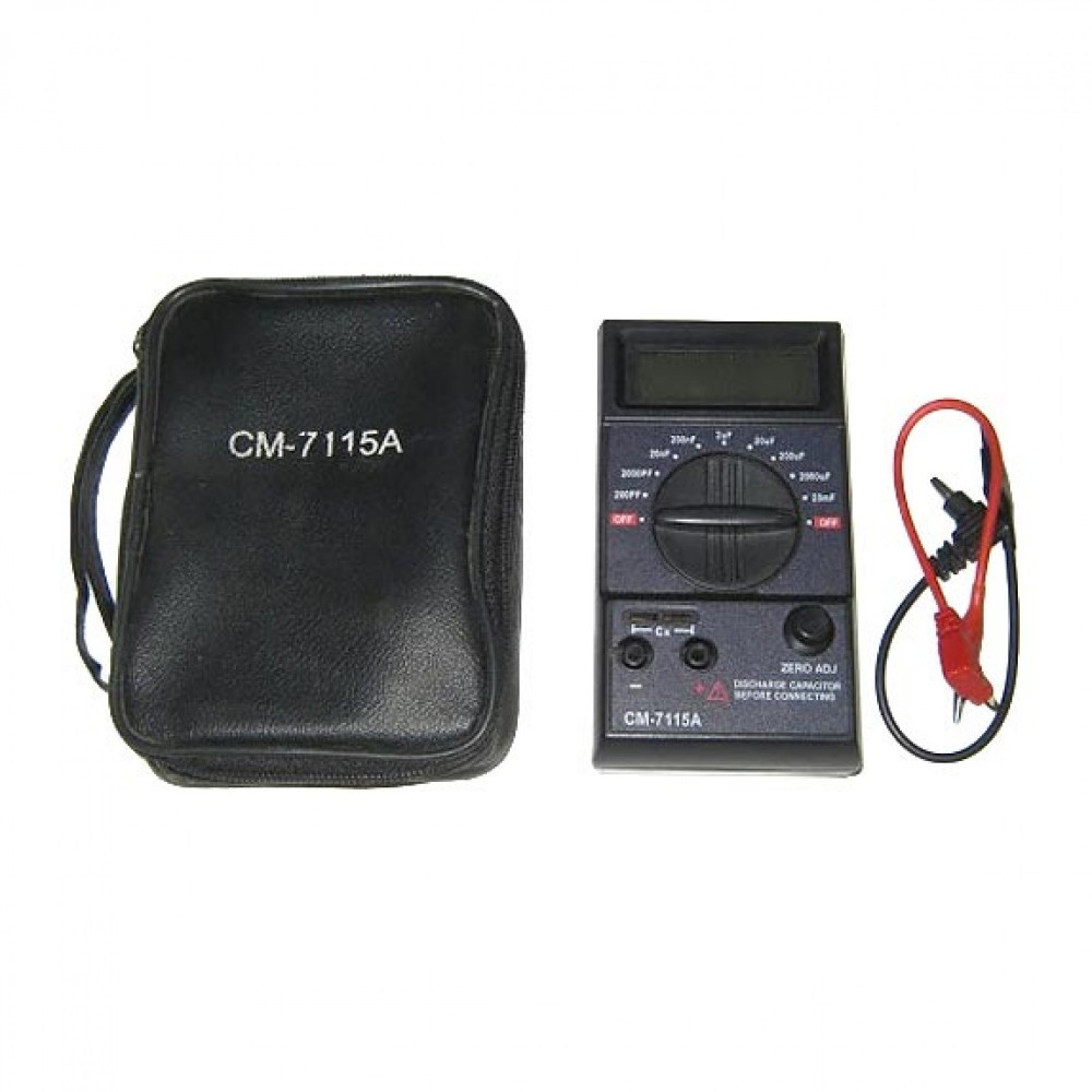 Вимірювач ємності конденсаторів CM7115A СМ-7115А - це цифровий прилад для високоточного вимірювання ємності конденсаторів. Діапазон Вимірювання: 20 мФ - 200 пФ. Комплектація СМ7115 - батарея крона 9В - щупи тип... Читати далі...